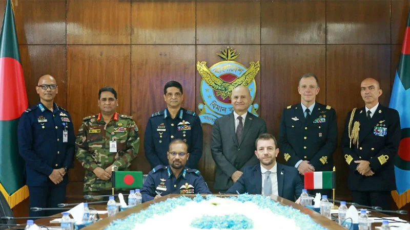 মঙ্গলবার বিকেলে বাংলাদেশ বিমানবাহিনীর ফেসবুক পেজে জানানো হয়েছে, বিমানবাহিনীর সদরদপ্তরে অনুষ্ঠিত এলওআই সই অনুষ্ঠানের সময় বাংলাদেশ বিমানবাহিনীর প্রধান এয়ার চিফ মার্শাল হাসান মাহমুদ খান এবং বাংলাদেশে নিযুক্ত ইতালির রাষ্ট্রদূত আন্তোনিও আলেসান্দ্রো উপস্থিত ছিলেন।