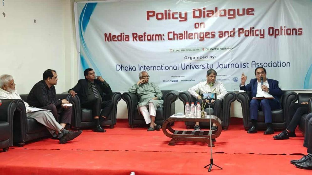 শনিবার (১১ অক্টোবর) সন্ধ্যায় রাজধানীর ঢাকা ইন্টারন্যাশনাল ইউনিভার্সিটিতে আয়োজিত ‘গণমাধ্যম সংস্কার : চ্যালেঞ্জ ও নীতি প্রস্তাবনা’ শীর্ষক পলিসি ডায়ালগে প্রধান অতিথির বক্তব্য এসব কথা বলেন তিনি। ঢাকা ইন্টারন্যাশনাল ইউনিভার্সিটি সাংবাদিক সমিতি এ নীতি সংলাপের আয়োজন করে।