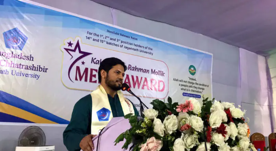 মঙ্গলবার (২৮ অক্টোবর) জগন্নাথ বিশ্ববিদ্যালয়ের বিজ্ঞান অনুষদ প্রাঙ্গণে ছাত্রশিবির আয়োজিত কবি মতিউর রহমান মল্লিক মেরিট অ্যাওয়ার্ড অনুষ্ঠানে তিনি এসব কথা বলেন।